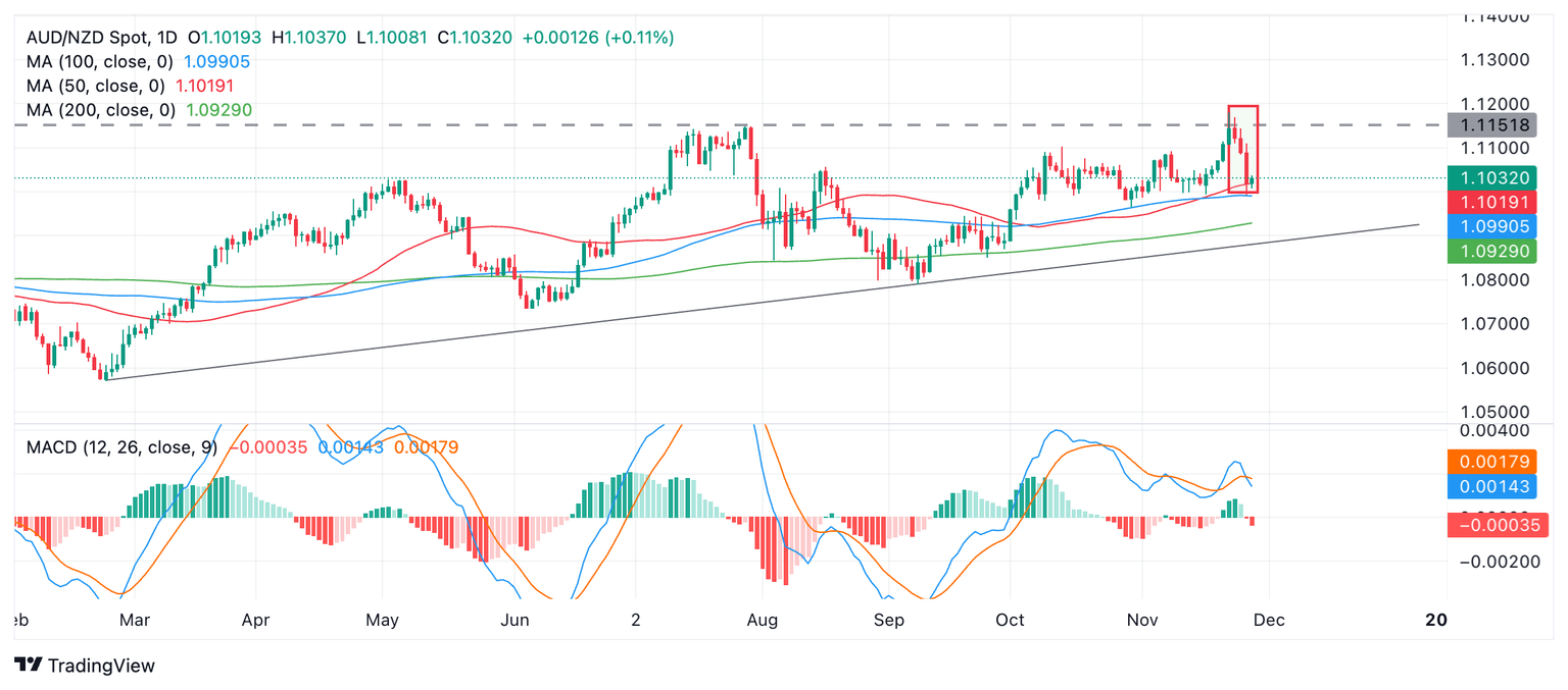 - El AUD/NZD ha confirmado un patrón de reversión bajista después de alcanzar su punto máximo a finales de noviembre.