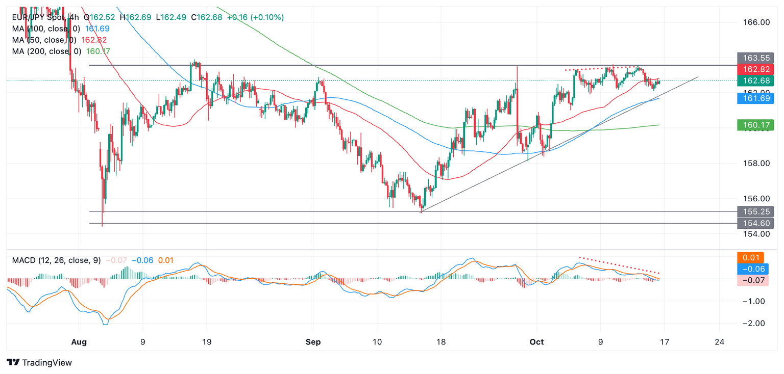 Predicción del precio del EUR/JPY: Retrocede desde los máximos del rango mientras el momentum diverge