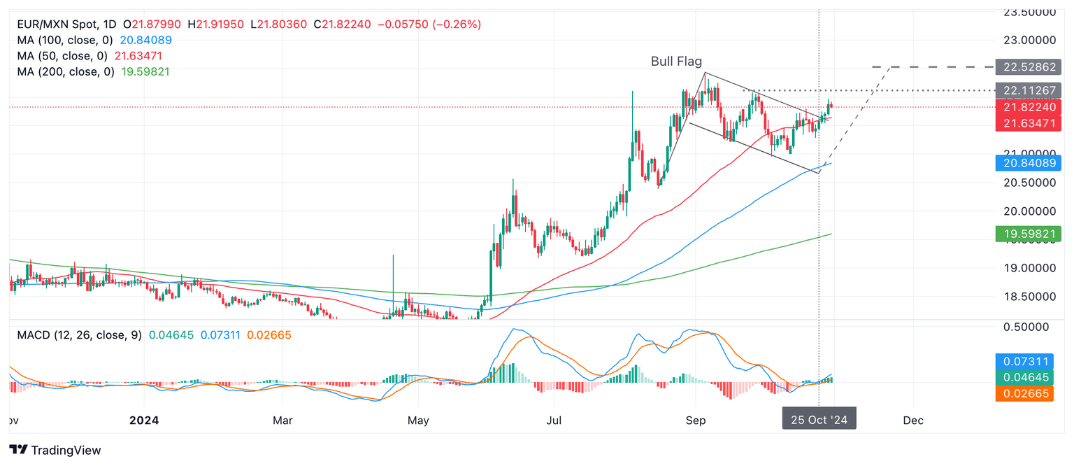 Predicción del Precio del EUR/MXN: Rompiendo la parte superior del patrón de Bandera Alcista