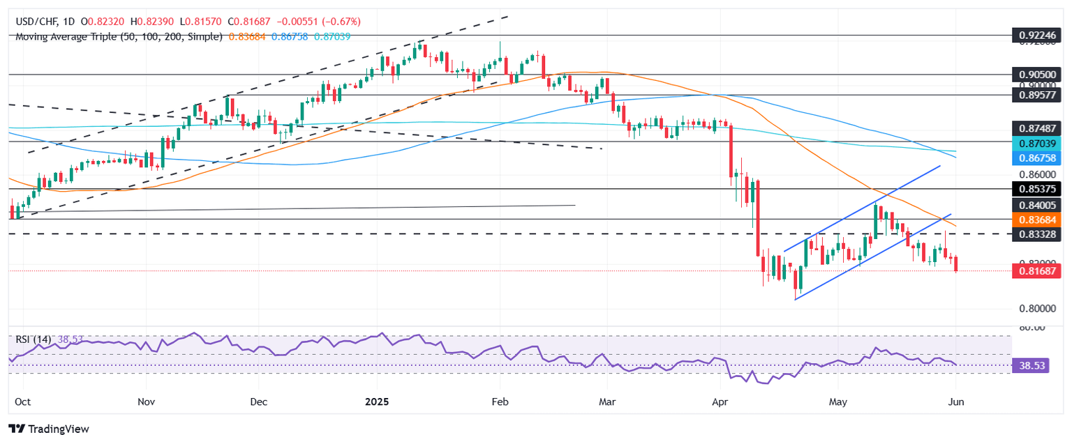 - El RSI confirma el impulso bajista; los próximos objetivos son el mínimo del año hasta la fecha (YTD) en 0.8083 y el soporte psicológico en 0.8000.