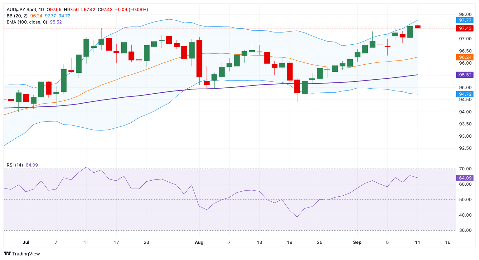 Pronóstico del Precio del AUD/JPY: El tono alcista se mantiene intacto cerca de 97.50