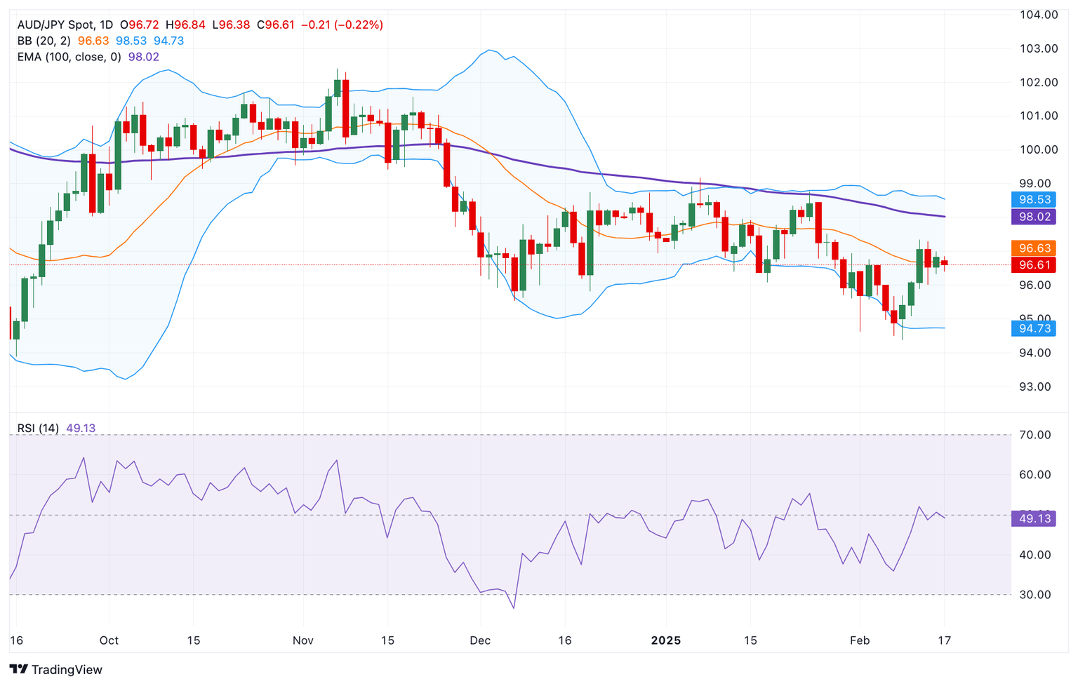 Según el gráfico diario, la perspectiva bajista del AUD/JPY sigue vigente ya que el cruce permanece limitado por debajo de la media móvil exponencial (EMA) de 100 días. Además, el impulso bajista está respaldado por el Índice de Fuerza Relativa (RSI), que se encuentra por debajo de la línea media, sugiriendo que el camino de menor resistencia es a la baja.