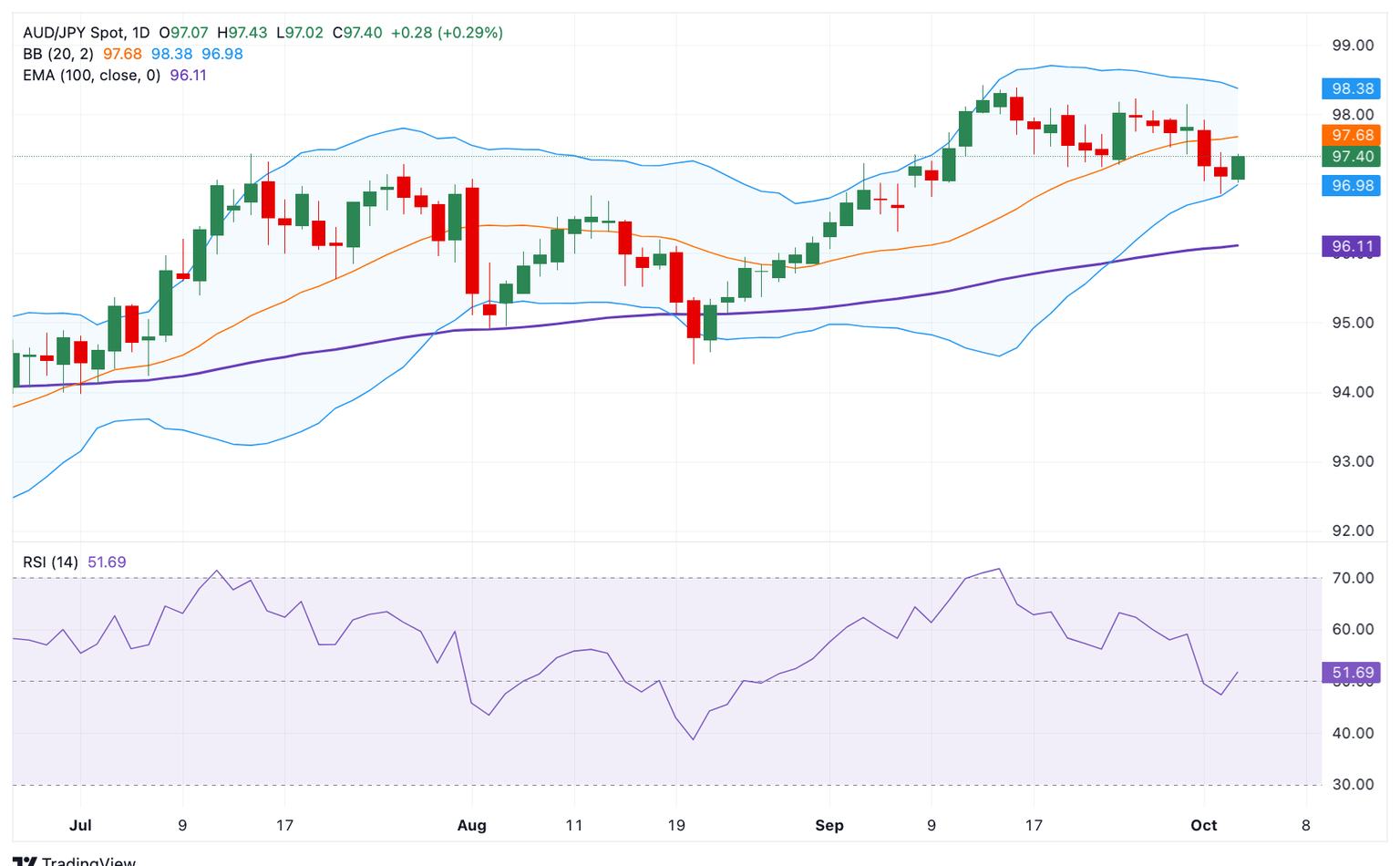 Pronóstico del Precio del AUD/JPY: Perspectiva alcista se mantiene intacta cerca de 97.50
