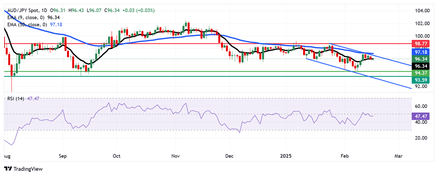 - El AUD/JPY prueba el soporte inmediato en la EMA de nueve días de 96.34.