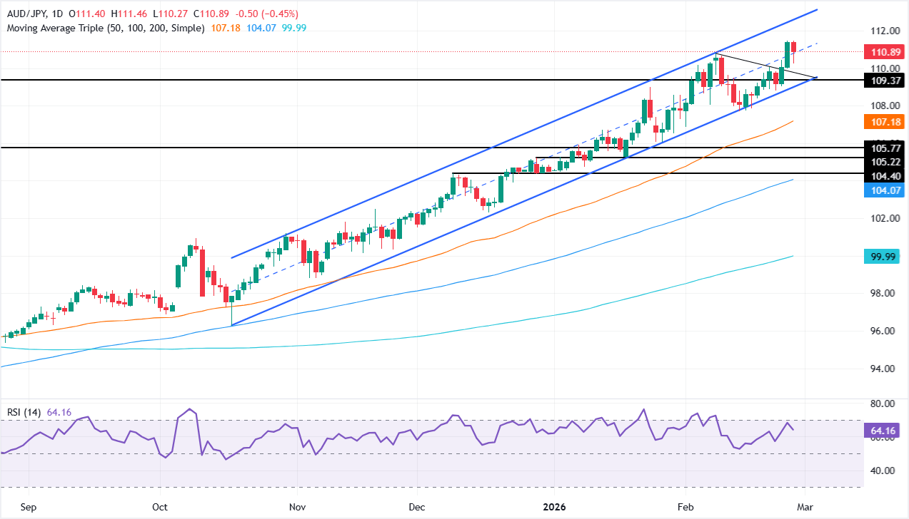 La tendencia alcista se mantiene intacta en el AUD/JPY, que a pesar de probar mínimos diarios de 110.26, está preparado para cerrar la sesión del jueves cerca de los máximos, abriendo la puerta a un mayor potencial alcista.