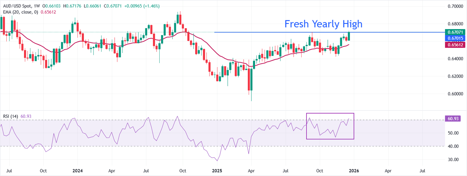 Pronóstico del Precio del AUD/USD: Marcando nuevos máximos anuales por encima de 0.6700