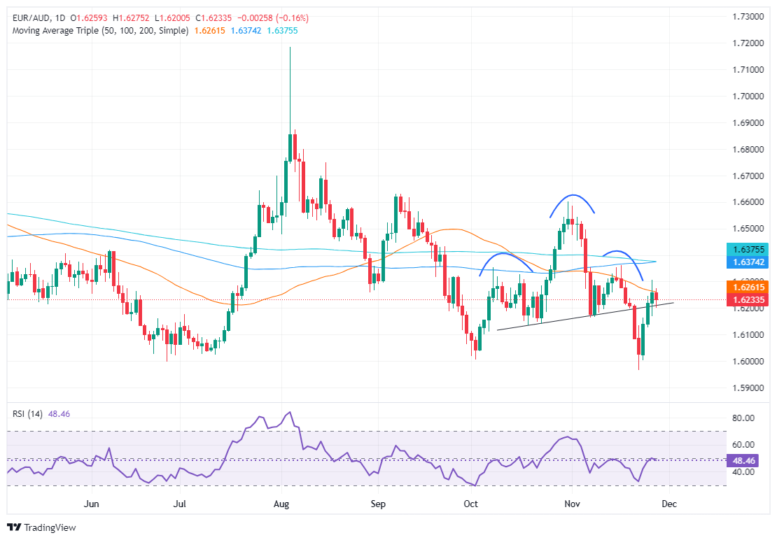 En su camino hacia el norte, el EUR/AUD encontró aceptación en 1.6200 antes de extender sus ganancias, pero los toros deben recuperar la media móvil simple (SMA) de 50 días en 1.6254 para mantener sus esperanzas de probar 1.6300.