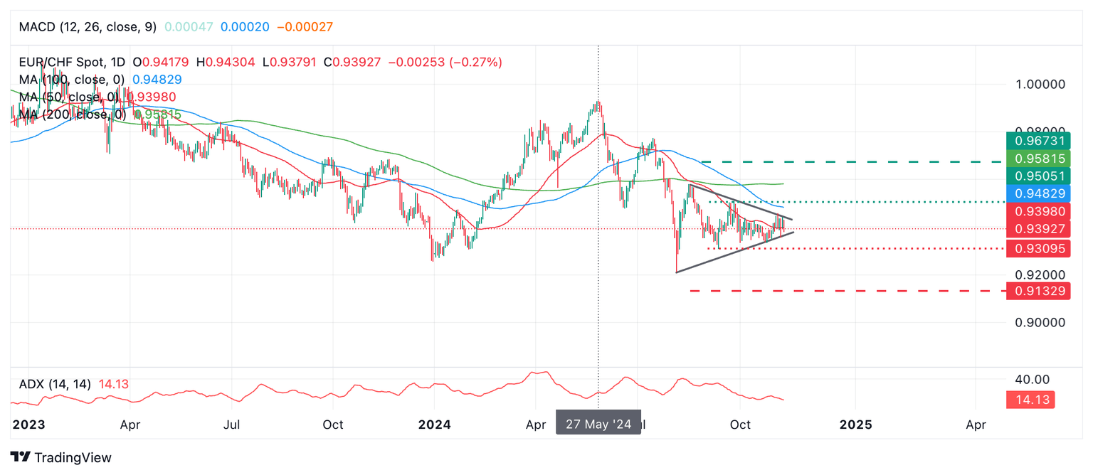 Pronóstico del precio del EUR/CHF: Patrón de triángulo completándose, ruptura por seguir