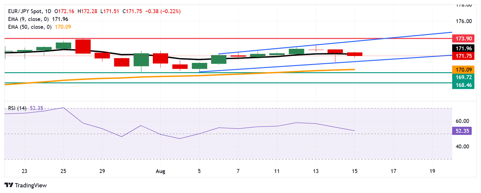 - El EUR/JPY podría encontrar la barrera inicial en la EMA de nueve días de 171.95.
