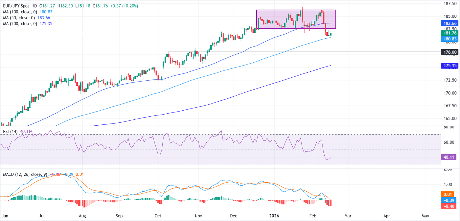 A la baja, la SMA de 100 días cerca de 180.83 está actuando como soporte inmediato. Una ruptura sostenida por debajo de este nivel podría exponer la marca psicológica de 178.00, seguida de la SMA de 200 días cerca de 175.35 como la próxima zona de soporte importante.