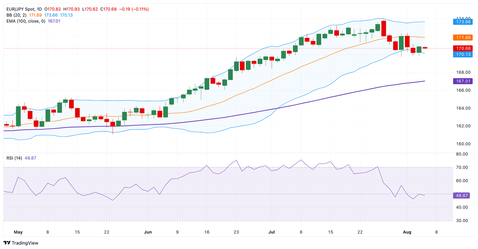 - El EUR/JPY se debilita alrededor de 170.70 en la sesión europea temprana del miércoles.