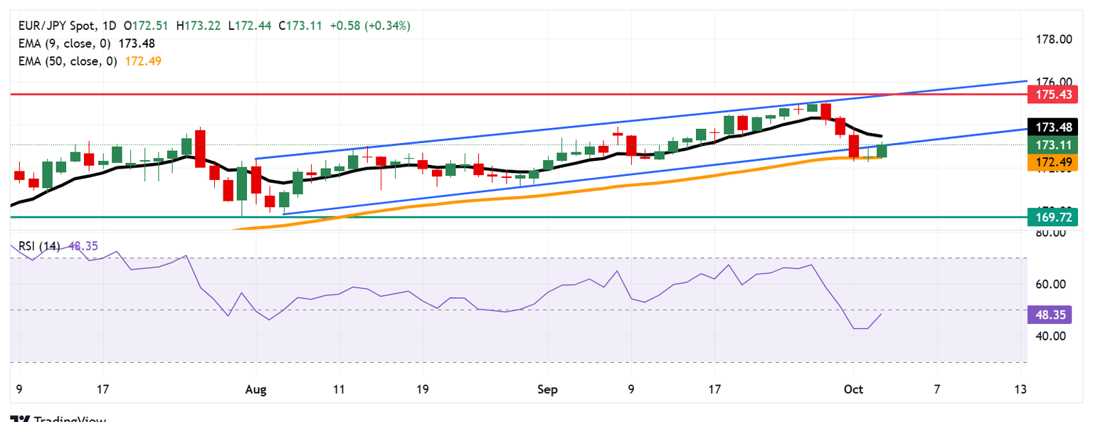 Pronóstico del Precio del EUR/JPY: Se mantiene por encima de 173.00 tras rebotar desde la EMA de 50 días