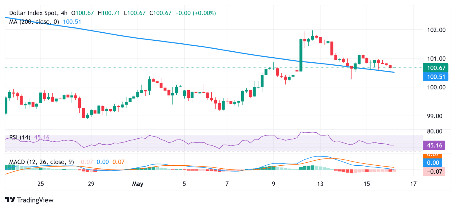 Pronóstico del Precio del Índice del Dólar (DXY): Parece vulnerable cerca de 100.70; se espera una ruptura por debajo de la SMA de 200 períodos en gráfico de 4 horas