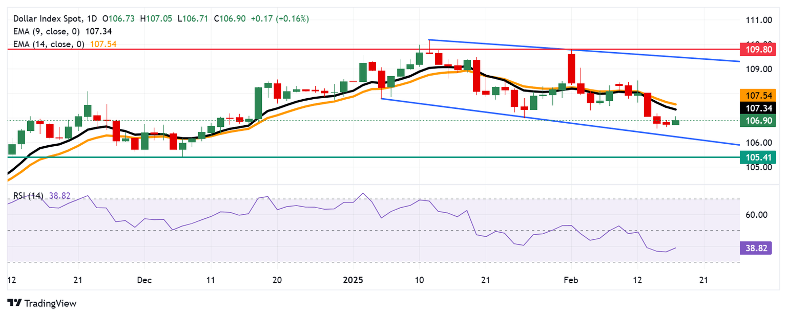 El Índice del Dólar estadounidense (DXY) sube el martes, rondando los 107.00 durante las horas de negociación europeas después de tres sesiones consecutivas de pérdidas. El gráfico diario indica un sesgo bajista predominante ya que el índice permanece confinado dentro de un canal descendente.