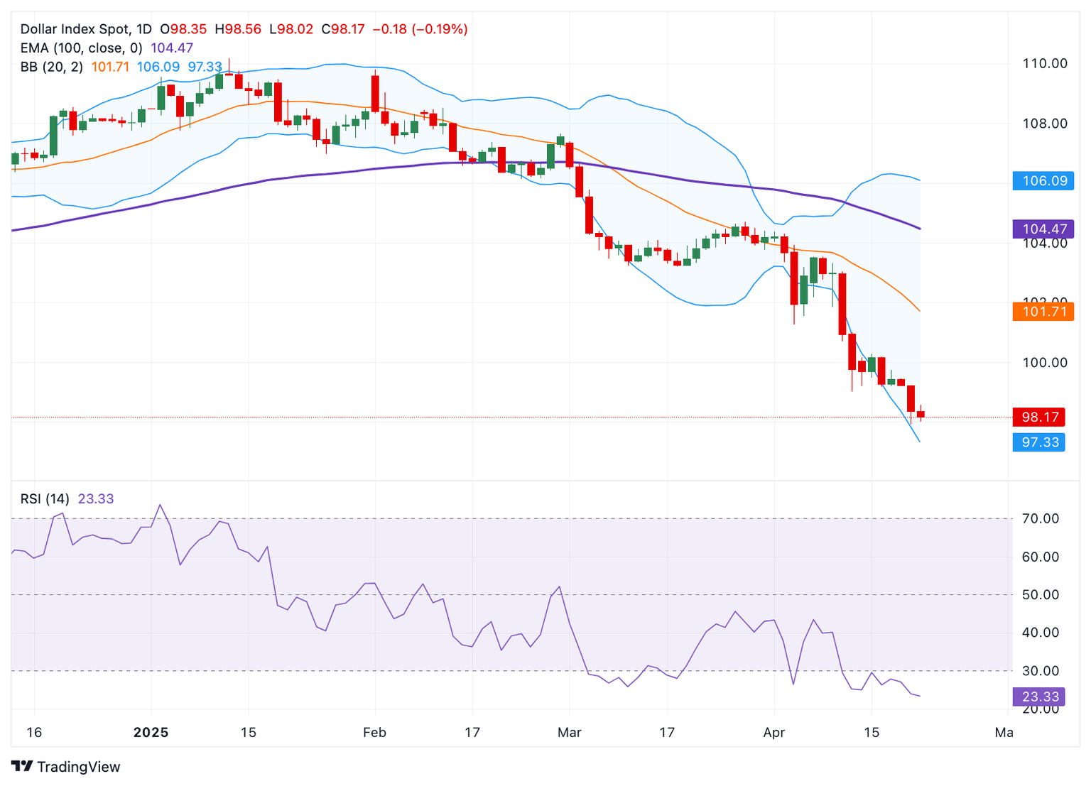Pronóstico del Precio del Índice del Dólar: Permanece bajo presión cerca de 98.00, RSI sobrevendido