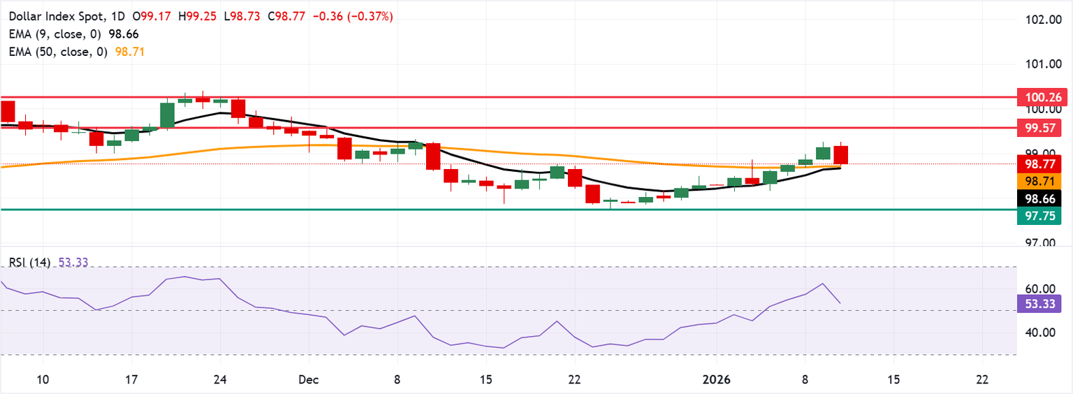 Pronóstico del Precio del Índice del Dólar: Probando el soporte de la EMA de 50 días tras romper por debajo de 99.00