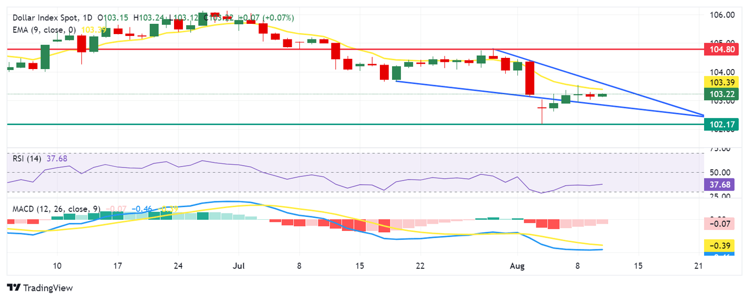Para la resistencia, el DXY podría enfrentar una barrera inmediata alrededor de la EMA de nueve días en el nivel de 103.39, seguido por el límite superior de la cuña descendente alrededor del nivel de 103.60. Una ruptura por encima de este nivel podría impulsar al índice a probar un máximo de seis semanas en 104.80, marcado el 30 de julio.