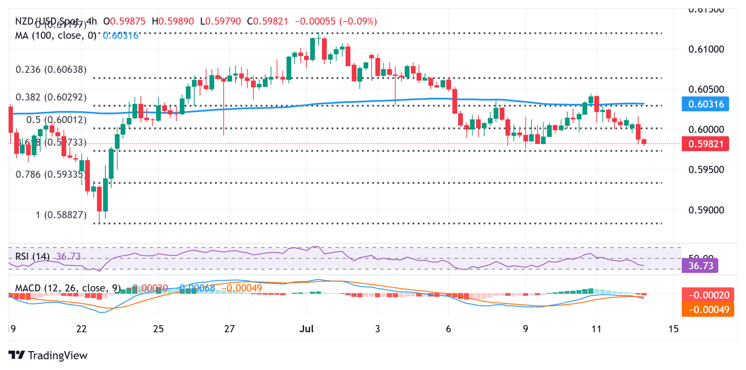 NZD/USD Pronóstico del Precio: Bajistas esperan ruptura por debajo del 61.8% de Fibo., alrededor de 0.5970