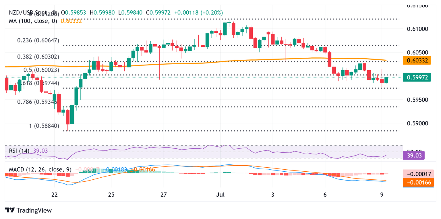 Pronóstico del Precio del NZD/USD: Se mantiene cerca de mínimos de dos semanas tras el RBNZ, vulnerable por debajo de 0.6000