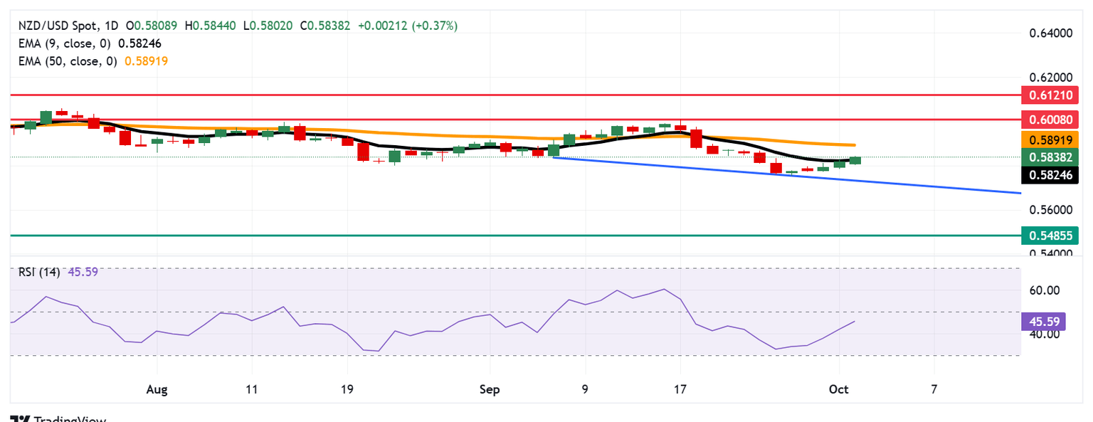 Pronóstico del Precio del NZD/USD: Sube cerca de 0.5850 tras superar la EMA de nueve días