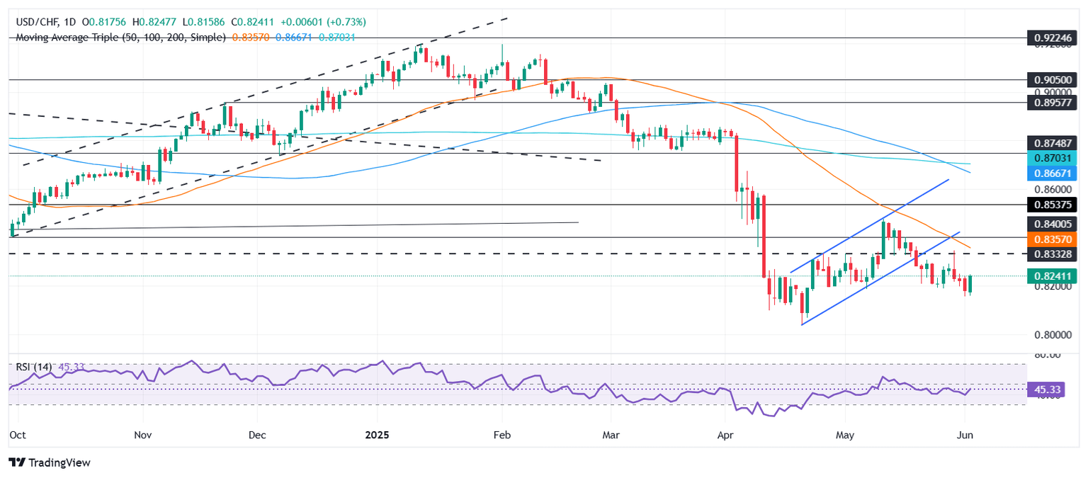 Pronóstico del USD/CHF: El par rebota desde un mínimo de seis semanas, sube por encima de 0.8200