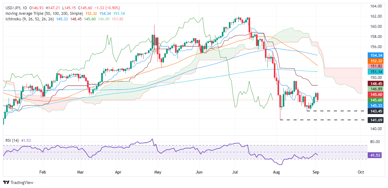 - El impulso del RSI apoya a los vendedores, con el primer soporte en el Tenkan-Sen 145.33 y el nivel psicológico de 145.00.