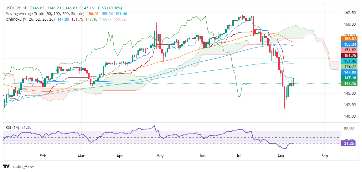 Por el contrario, si el USD/JPY supera el Tenkan-Sen en 147.79, esto despejará el camino hacia los picos del 12 de agosto de 148.00. Con más fuerza, el par podría repuntar hacia el Sekou Span A en 149.77 antes de probar la media móvil de 200 días (DMA) en 151.46.