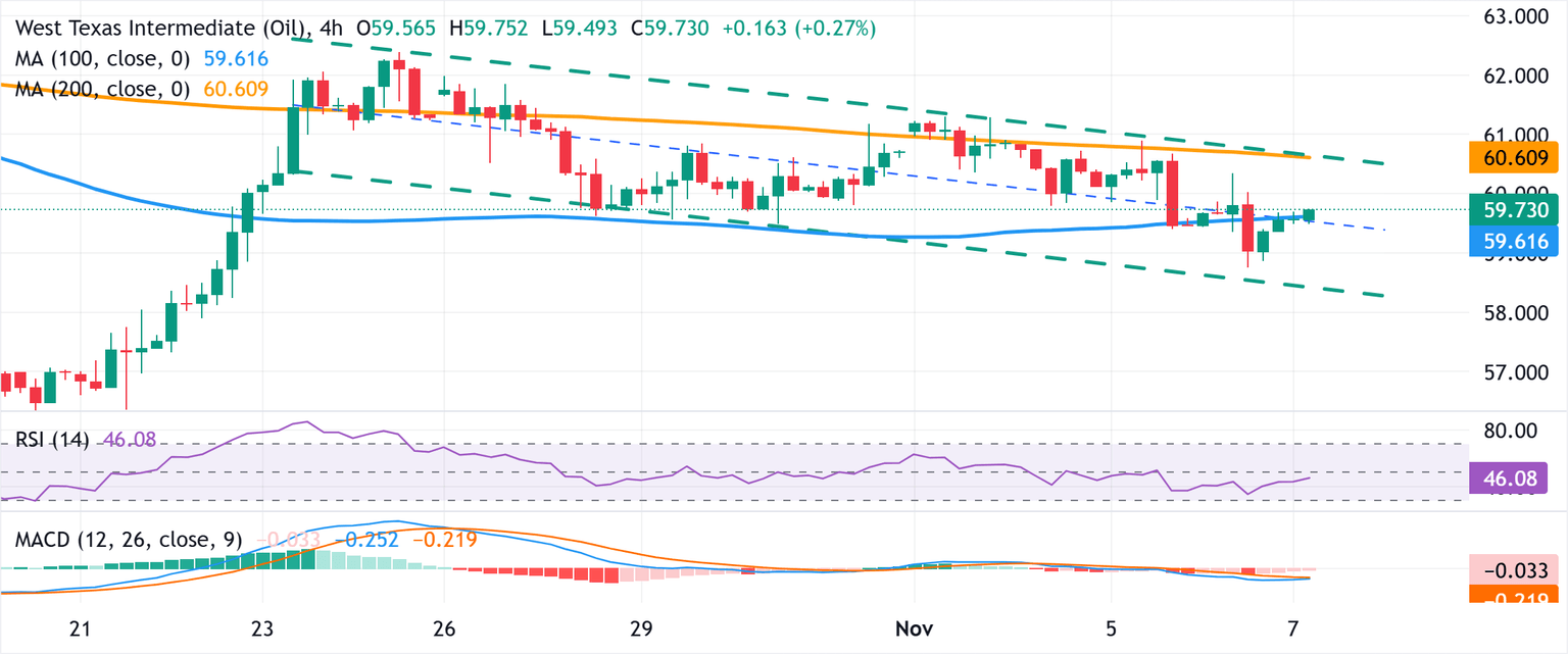 Pronóstico del precio del WTI: Cotiza con ganancias modestas por debajo de 60.00$; aún no está fuera de peligro