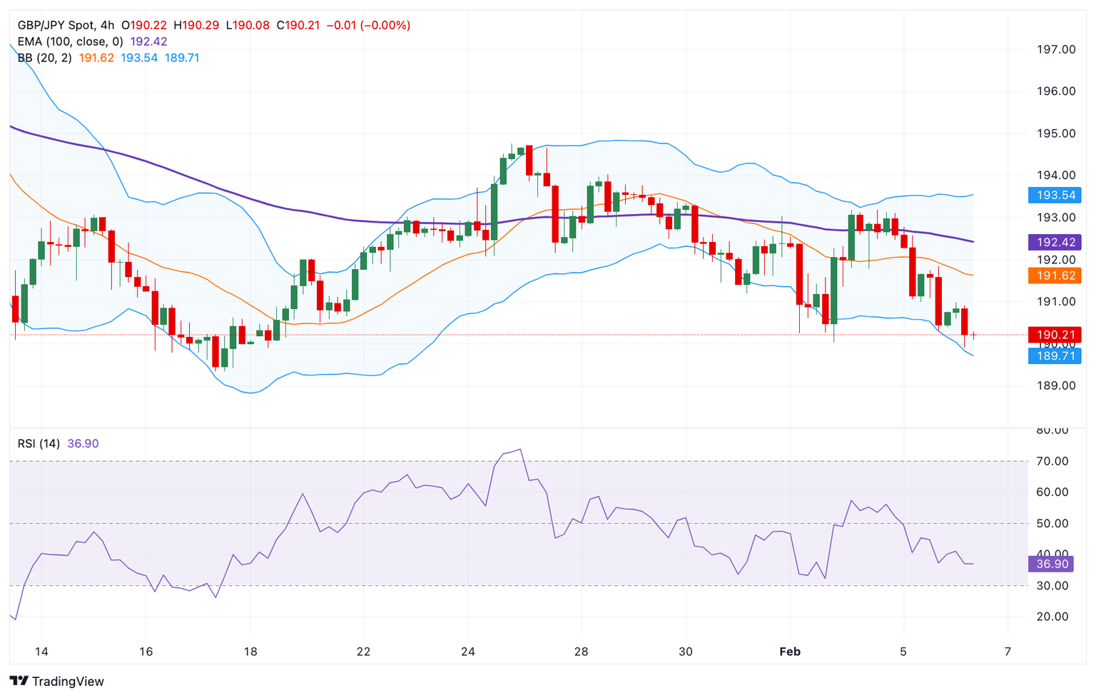 En el lado positivo, la EMA de 100 periodos en 192.40 actúa como un nivel de resistencia inmediato para el cruce. Un comercio sostenido por encima de este nivel podría atraer a algunos compradores hacia 193.54, el límite superior de la Banda de Bollinger. Más al norte, el siguiente obstáculo se observa en 194.71, el máximo del 27 de enero.