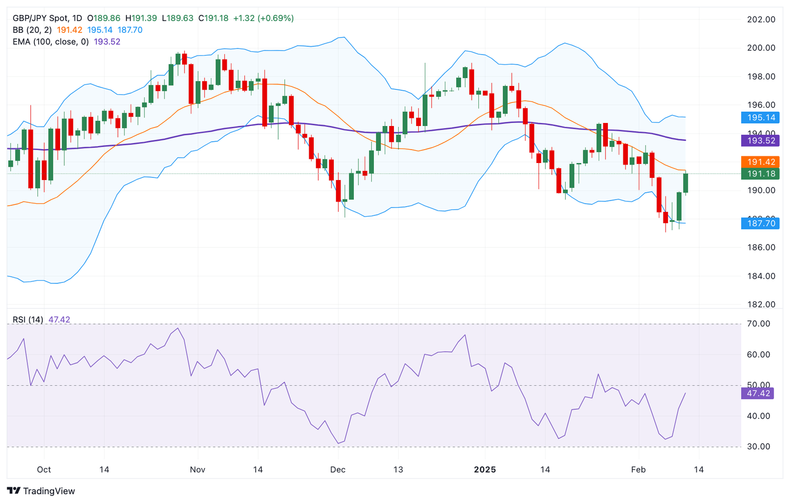 El cruce GBP/JPY cotiza en territorio positivo cerca de 191.20 durante la sesión europea temprana del miércoles. El Yen japonés (JPY) se debilita en medio de la preocupación de que los impuestos sin exención del presidente de EE.UU., Donald Trump, sobre las importaciones de productos básicos puedan poner en peligro la recuperación económica de Japón.