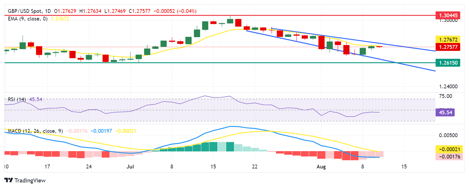 GBP/USD Pronóstico del Precio: Se mantiene por encima de 1.2750 probando la EMA de 9 días