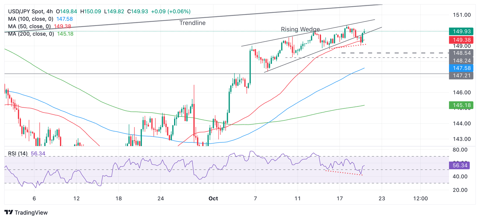 Una ruptura por debajo del mínimo de 149.09 formado después de la ruptura proporcionaría confirmación de más debilidad y un cambio en la tendencia a corto plazo. Esto probablemente llevaría a un objetivo en 148.40 como mínimo, que es la extrapolación de Fibonacci del 61.8% de la altura de la cuña hacia abajo.