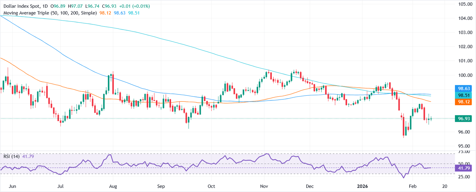 El Índice del Dólar estadounidense (DXY), que mide el rendimiento del Dólar frente a una cesta de seis divisas, redujo las pérdidas anteriores que empujaron al índice a mínimos cerca de 96.74, y se negocia en 96.93, a punto de superar la cifra de 97.00.