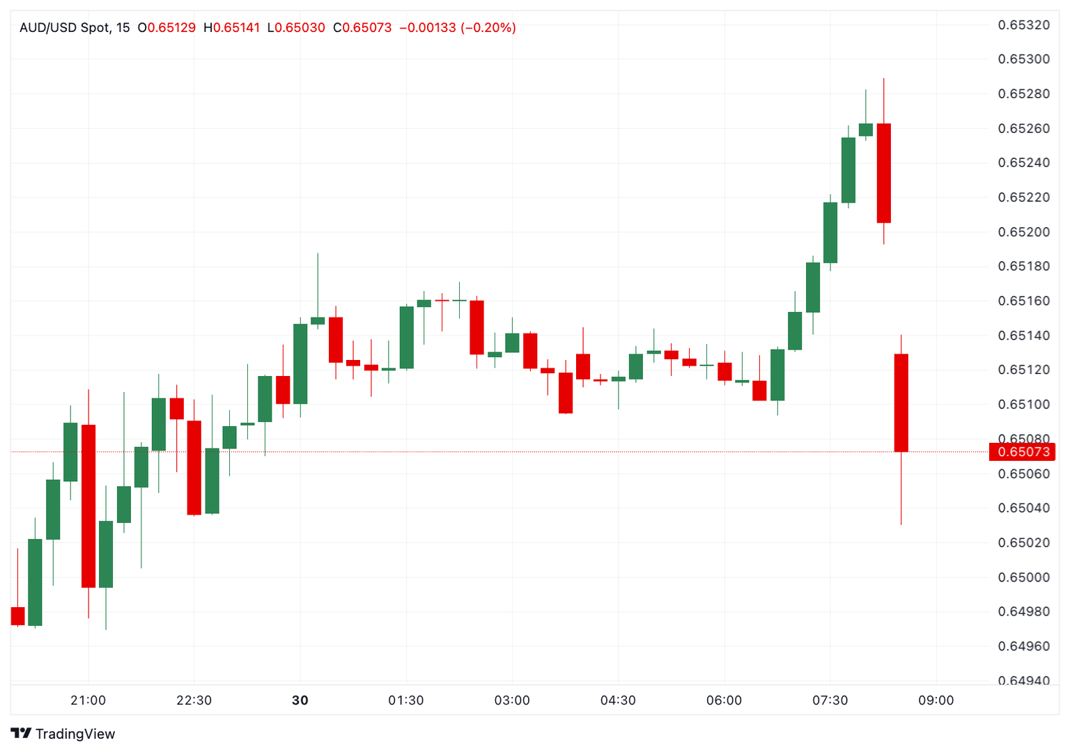 Antes del anuncio, el Dólar australiano (AUD) se cotiza alrededor de la marca de 0.6500 frente a su rival estadounidense.