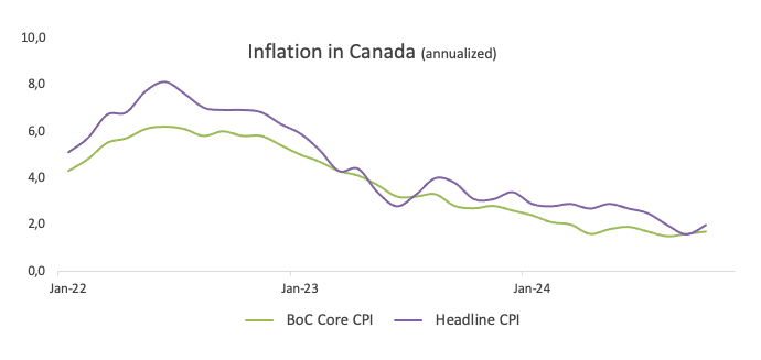 A raíz del claro consenso que siguió al recorte de tasas de 50 puntos básicos del BoC el 23 de octubre, el gobernador Tiff Macklem reconoció que la inflación "ha bajado un poco más rápido de lo esperado".