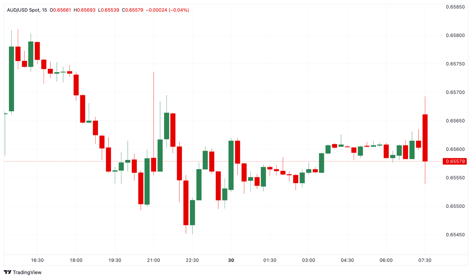 El par AUD/USD baja tras los datos de inflación de Australia. El par está perdiendo un 0,05% en el día para cotizar a 0.6557, al momento de la publicación.