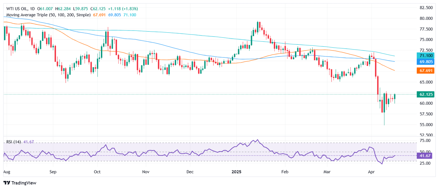 Después de operar cerca del área de 61.95$, el WTI se disparó a 62.27$ antes de estabilizarse en su nivel actual de 62.03$ por barril. Un cierre diario por encima del máximo del 14 de abril de 62.64$ podría exacerbar un rally hacia la media móvil simple (SMA) de 20 días en 65.69$, antes de probar la SMA de 50 días en 67.81$.