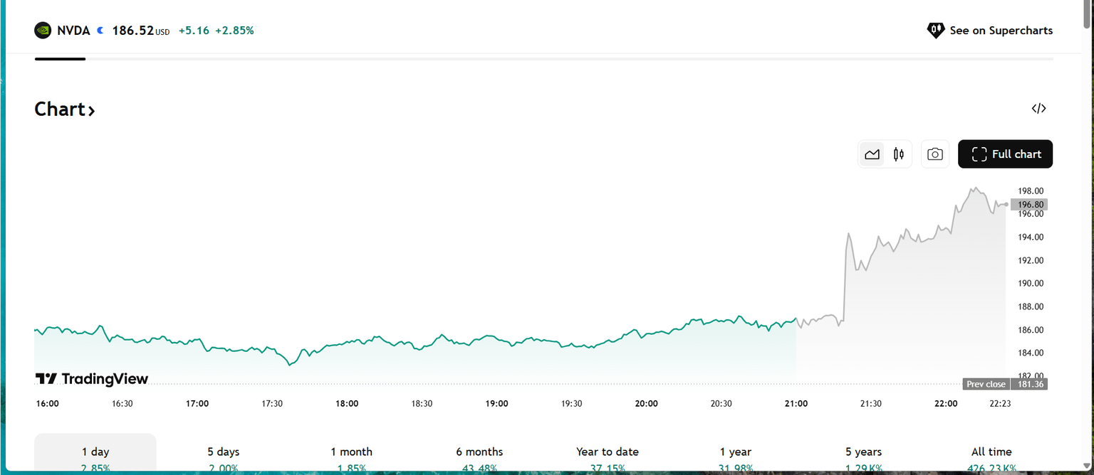 Cualquier preocupación sobre la demanda o el gasto en capex en el comercio de IA se ha disipado por ahora, y el precio de las acciones de Nvidia se disparó en el comercio posterior al mercado, aumentando más del 6% en un momento. Cuando Nvidia predice una fuerte demanda, esto tiene un efecto dominó en otros sectores del mercado de IA. AMD, CoreWeave y Broadcom están todos significativamente más altos en el post-mercado.