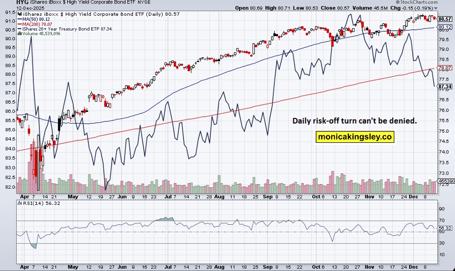 ¿Se ha perdido el caso alcista, y se ha cancelado el repunte de Santa Claus a principios de la semana (incluso si el BTC no repunta y sigue en ese patrón de cuña / bandera bajista problemático)? Fui tajante hace días al decir que la iniciativa se trasladó del Nasdaq a los financieros, cíclicos (sigue siendo industriales sobre defensivos), y al Russell 2000 – tanto miedo a la recesión que cuando fue la última vez que viste a las acciones de consumo y minoristas repuntar (ANF el viernes es un resultado de la reestructuración de la dirección más que un desarrollo de la industria que se propague como un incendio forestal). Elige tus acciones y sectores ya que los vientos en contra de la tecnología significan que el entorno se está volviendo defensivo.