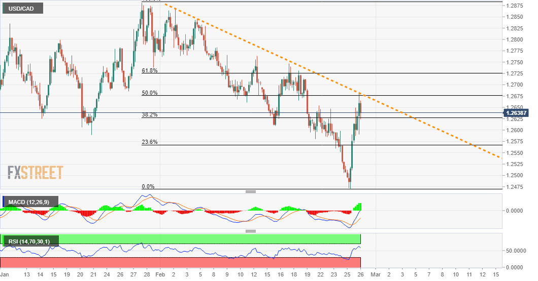 USD/CAD Análisis del Precio: Desciende desde los máximos semanales, todavía bien ofrecido alrededor de 1.2650