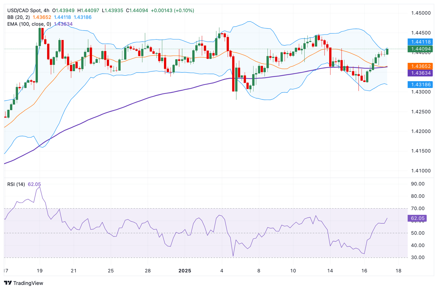 Técnicamente, el USD/CAD reanuda su camino alcista ya que el precio se mantiene en la media móvil exponencial (EMA) clave de 100 periodos en el gráfico de 4 horas. El impulso alcista también está respaldado por el Índice de Fuerza Relativa (RSI), que se encuentra por encima de la línea media cerca de 61.50, sugiriendo que más alzas parecen favorables a corto plazo.