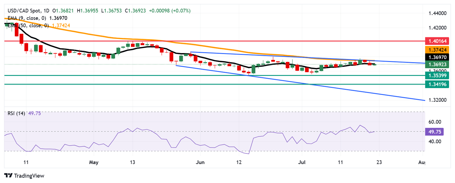 USD/CAD Previsión del Precio: Probando la barrera de la EMA de nueve días cerca de 1.3700