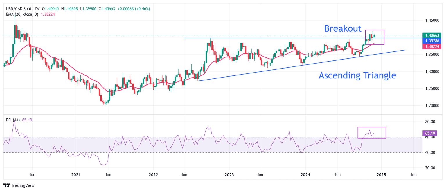 - USD/CAD mantiene la ruptura del Triángulo Ascendente, lo que sugiere más alzas por delante.