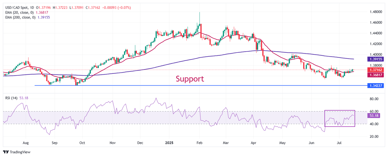 - El USD/CAD cotiza tranquilamente cerca de 1.3720 mientras el Dólar estadounidense demuestra fortaleza, tras los datos del IPC de EE.UU. para junio.