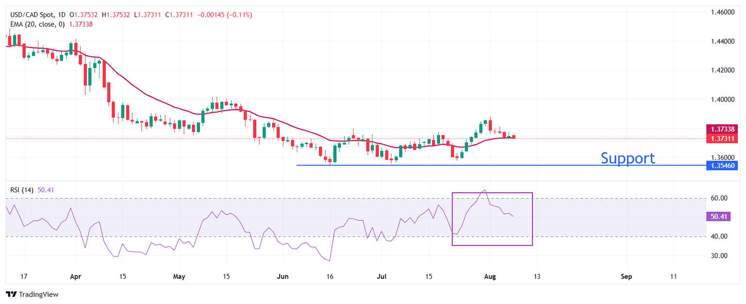 - El USD/CAD cotiza lateralmente alrededor de 1.3730 mientras los inversores esperan los datos del mercado laboral canadiense para julio.