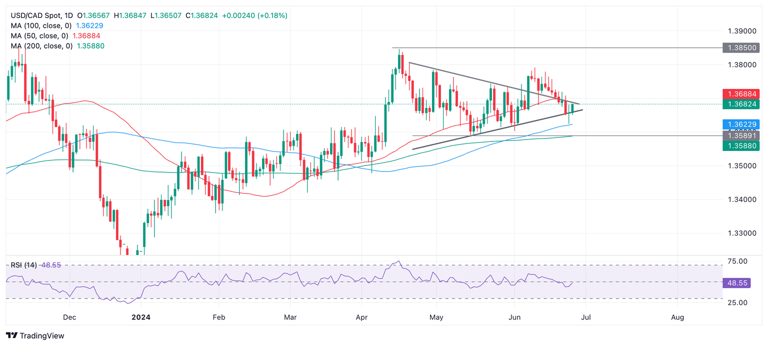El USD/CAD sube ligeramente el miércoles, cotizando en los 1.3680 mientras el Dólar estadounidense (USD) se fortalece con los comentarios de varios fijadores de tasas de la Reserva Federal (Fed), que en general sugieren que el banco central de EE.UU. es reacio a recortar su tasa de interés principal, la tasa de fondos federales, debido a los insuficientes progresos en la reducción de la inflación.