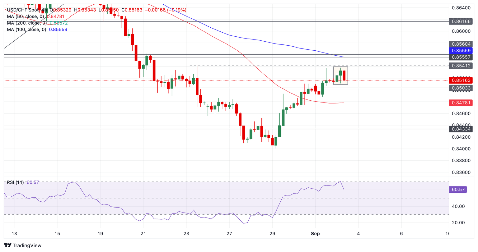 Si se desarrolla una corrección, probablemente retrocederá hasta el soporte en 0.8503 o 0.8485.