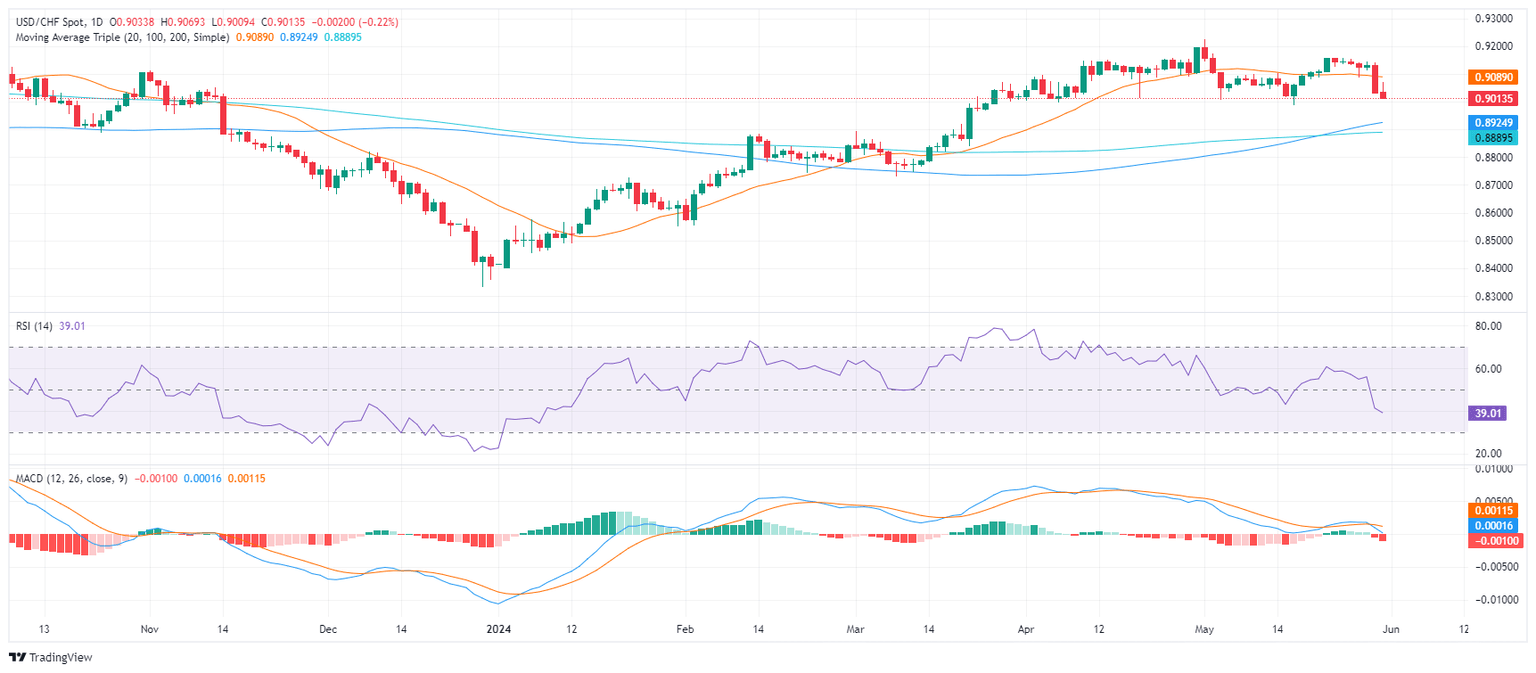 - USD/CHF cayó en la sesión del viernes, desplomándose a 0.9016, después de subir ligeramente a 0.9070 al inicio de la sesión.