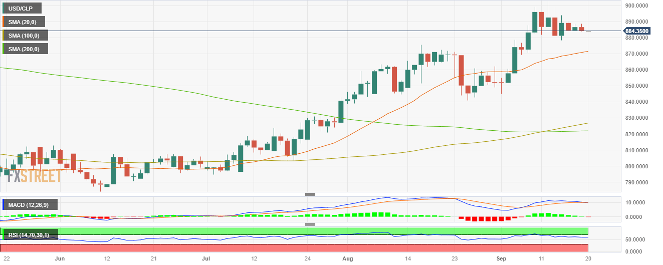 El martes, los alcistas del USD/CLP se toman un respiro tras impulsar el par al alza más de un 3.82% en septiembre y consolidan las ganancias en la zona de 884.35.