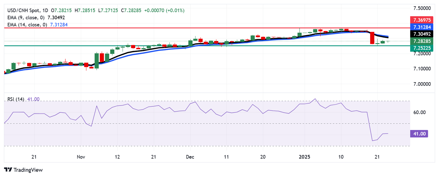Análisis Técnico: El USD/CNH podría encontrar resistencia inicial en la EMA de nueve días cerca de 7.3100
